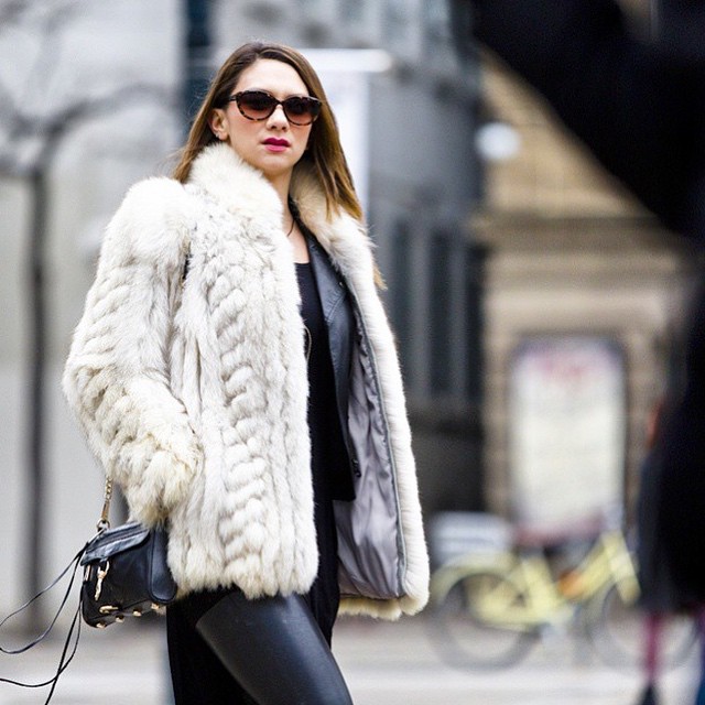 Fashion week came and went so fast – I was so blessed to watch alot of shows and i am a huge Canadian fashion supporter!! In the pic I am wearing a vintage fox fur with a moto vest under for warmth, Aritzia leather look leggings, a black tee and my trusty Rebecca Minkoff mini mac!