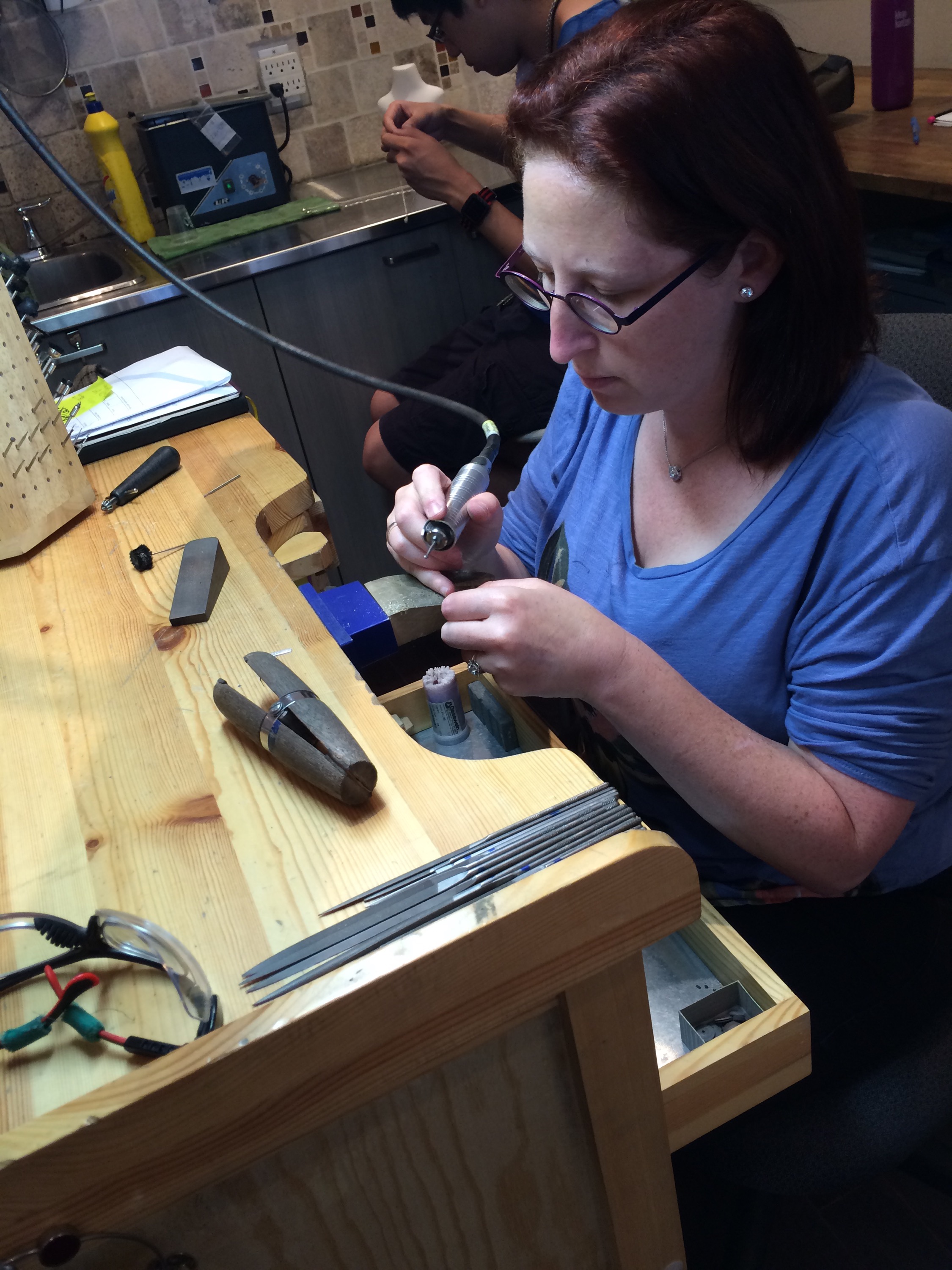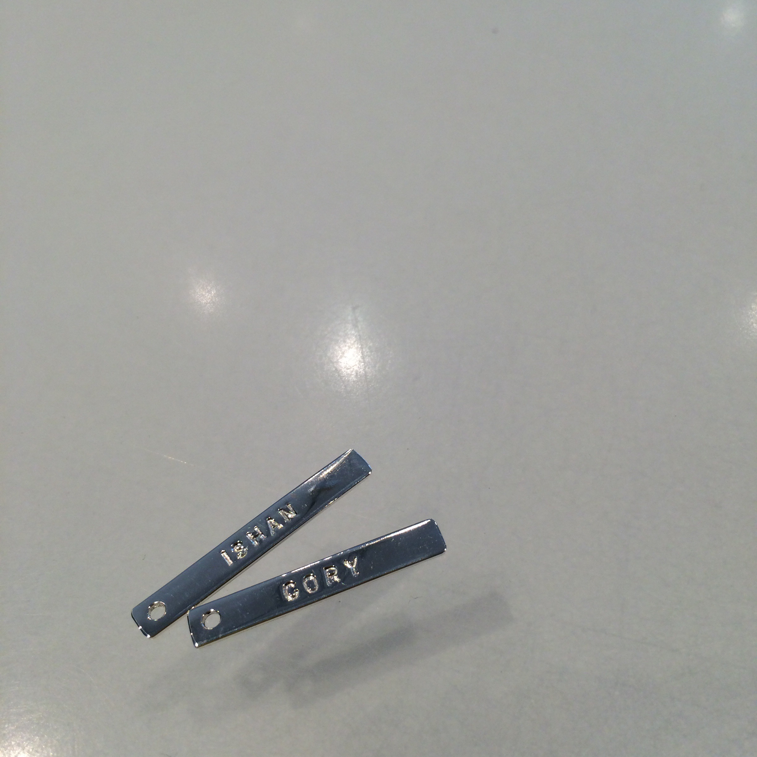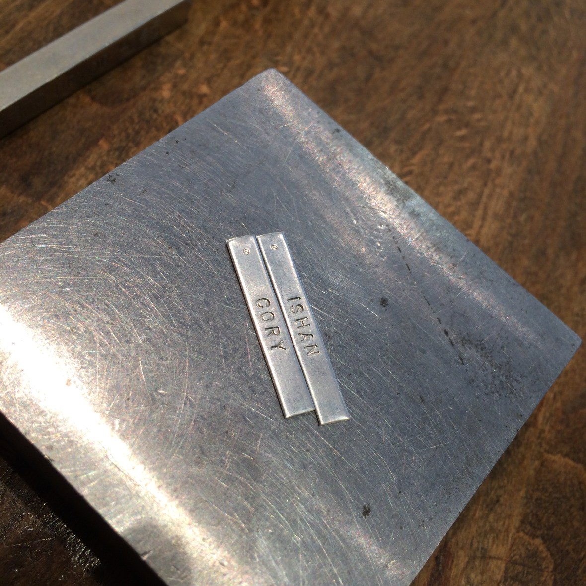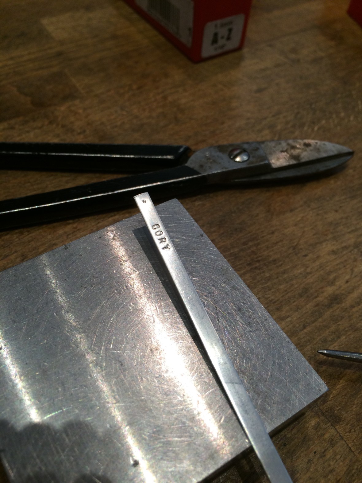 I went with my fiancée and I’s birthstone colours. Then she started hand stamping out our names!