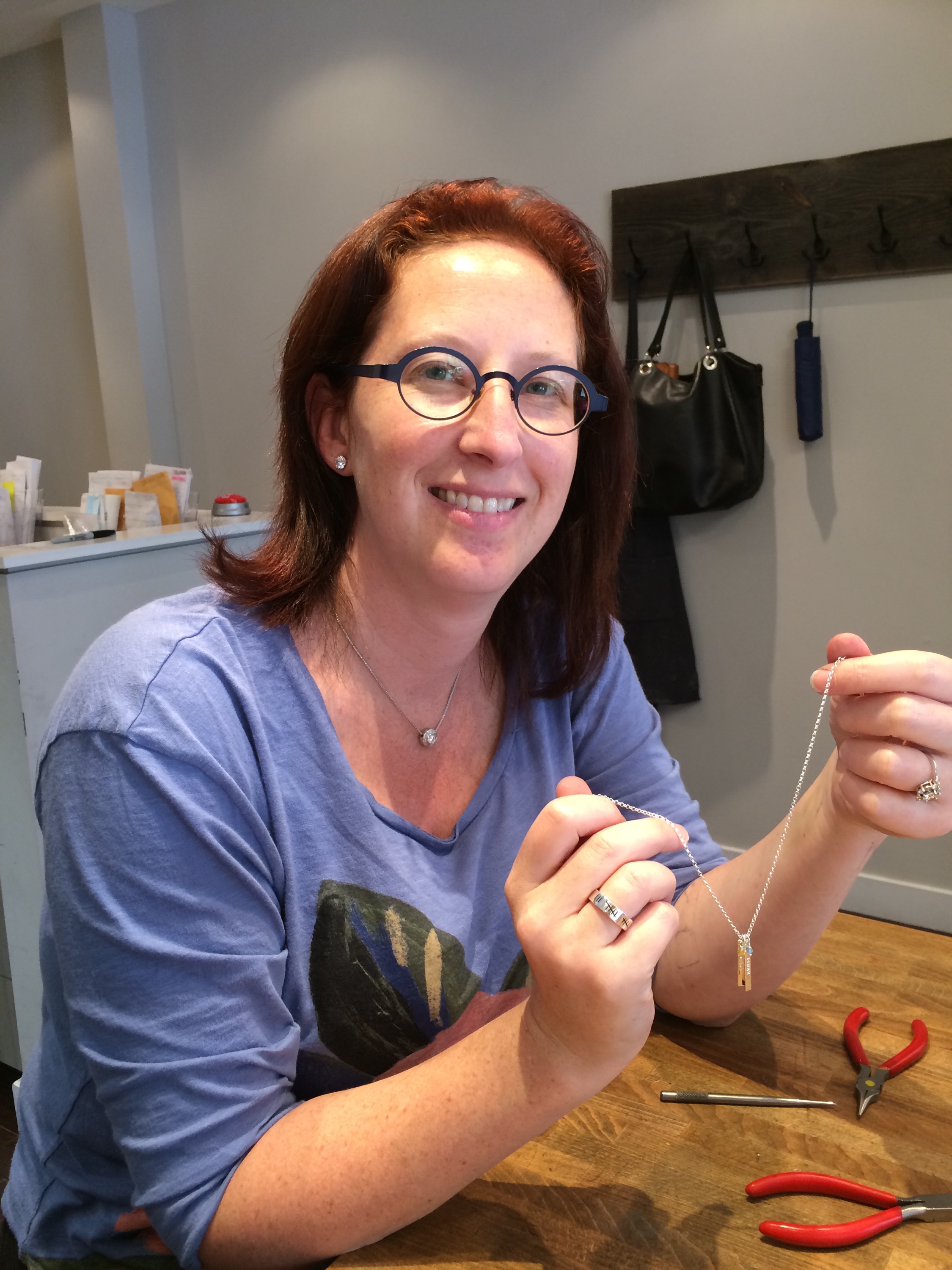 I just love it so much! I’ve wanted something with our names for awhile and this is just perfect! Plus how cute is she!!!?? She clearly loves what she does. As she was making my necklace she said “It is very rewarding being involved in peoples happy occasions”.