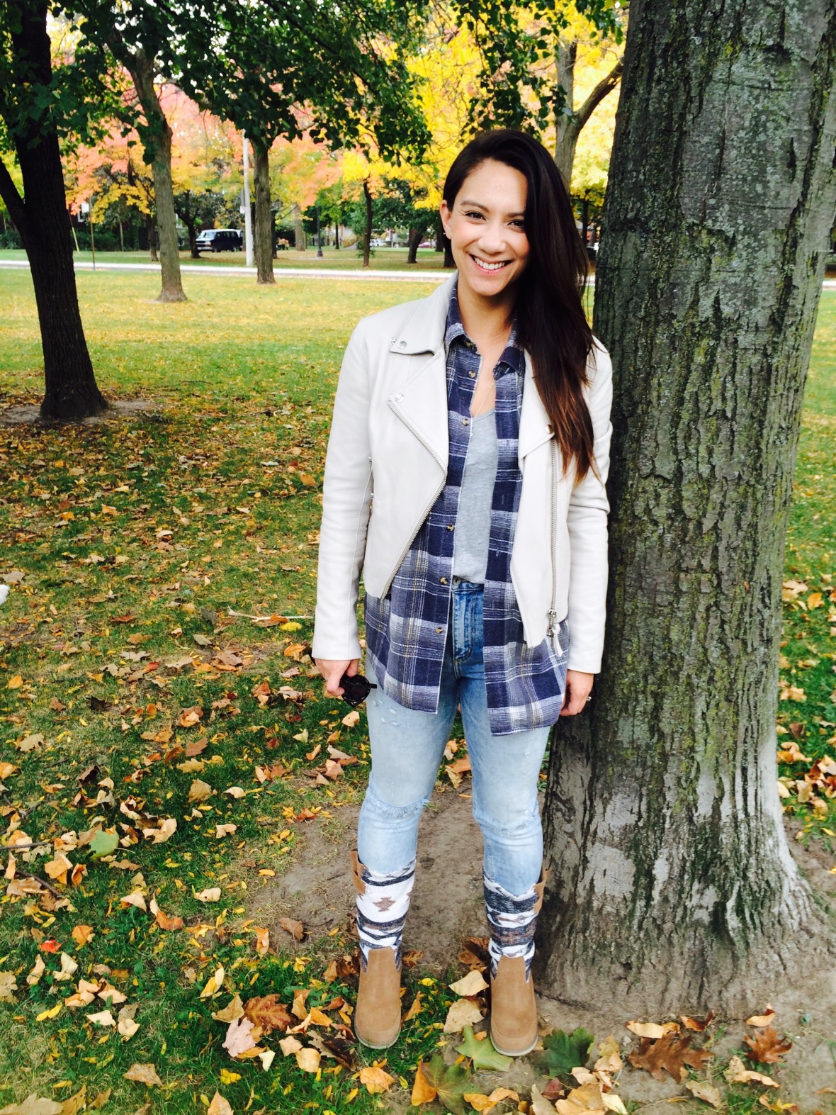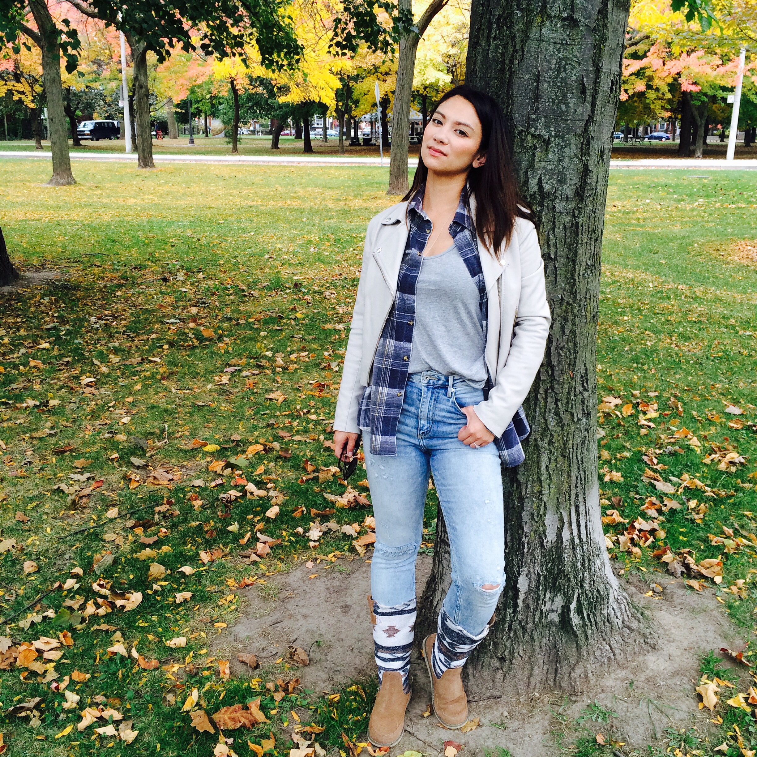 I paired them with my high waisted H&M jeans, Aritzia tee, vintage flannel and Mackage cream Moto from Aritzia!