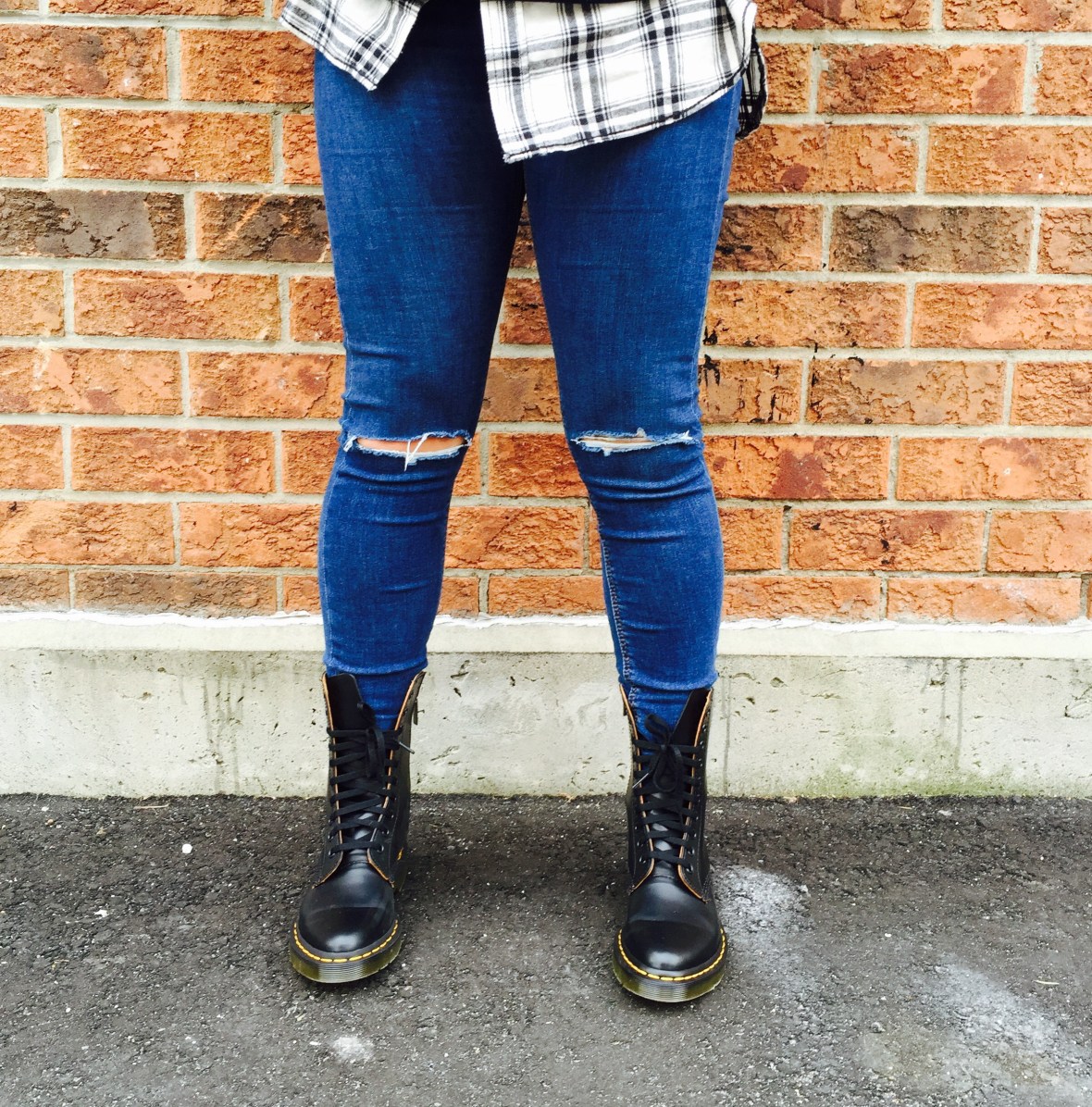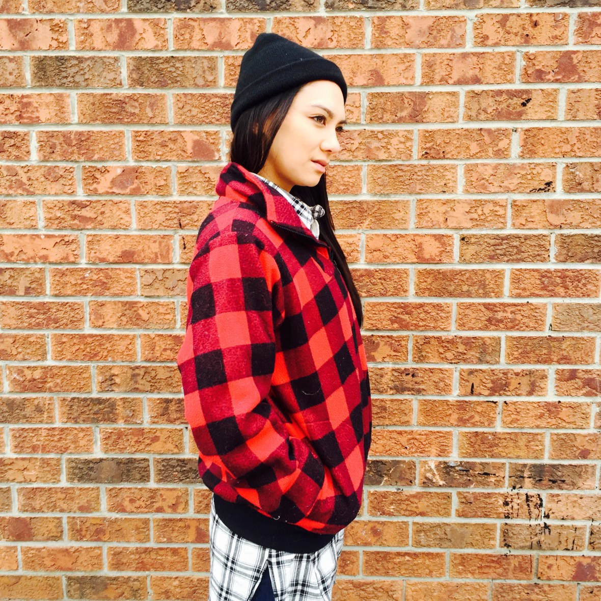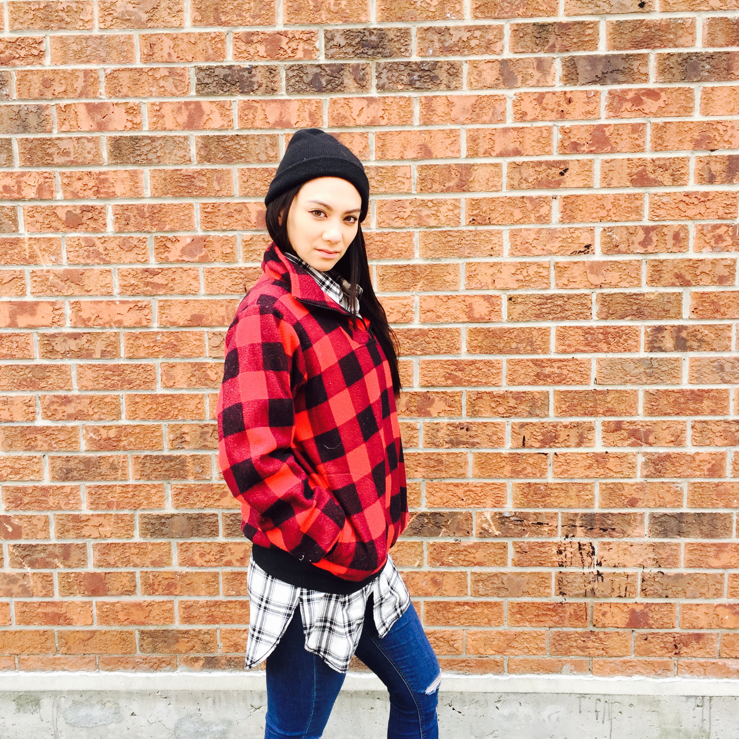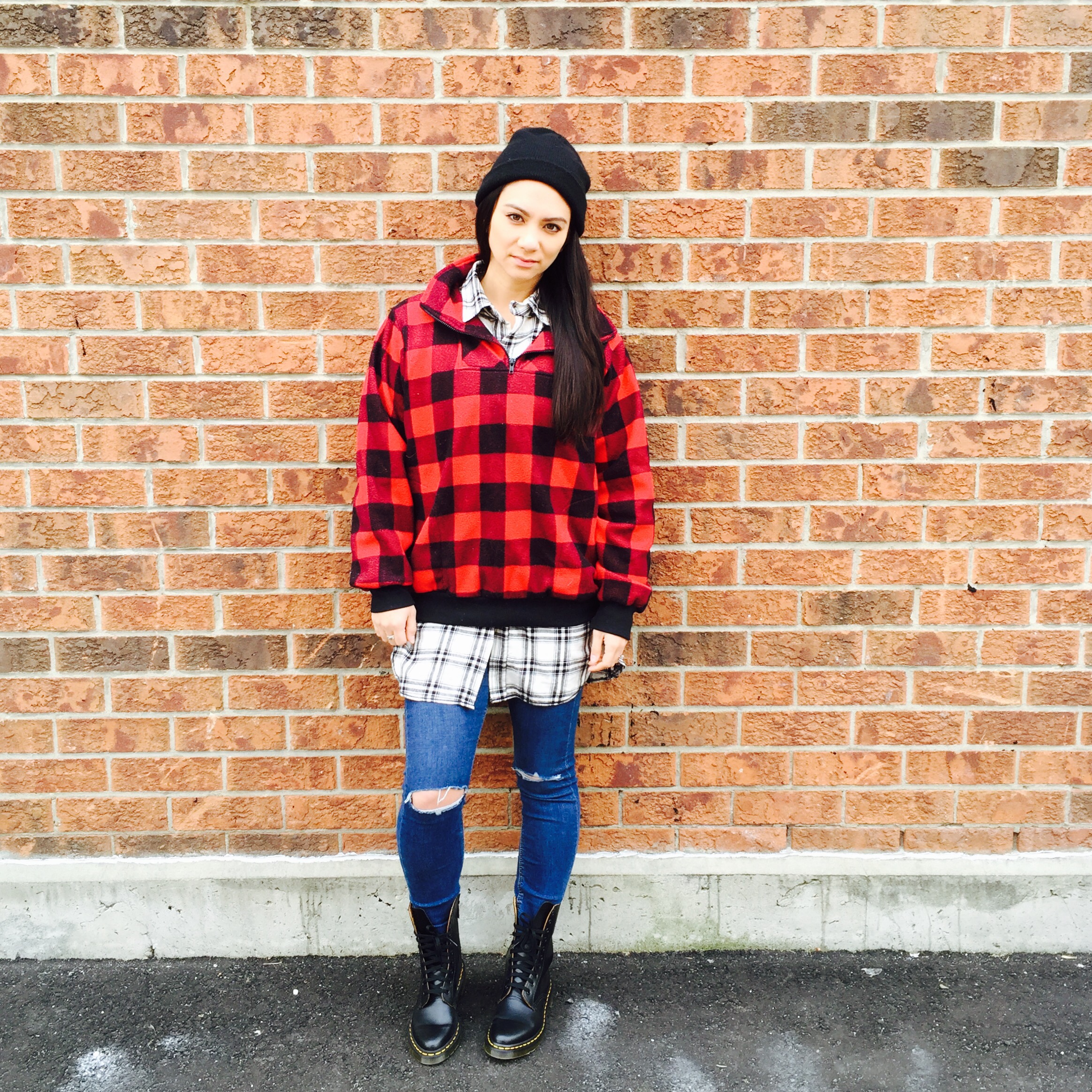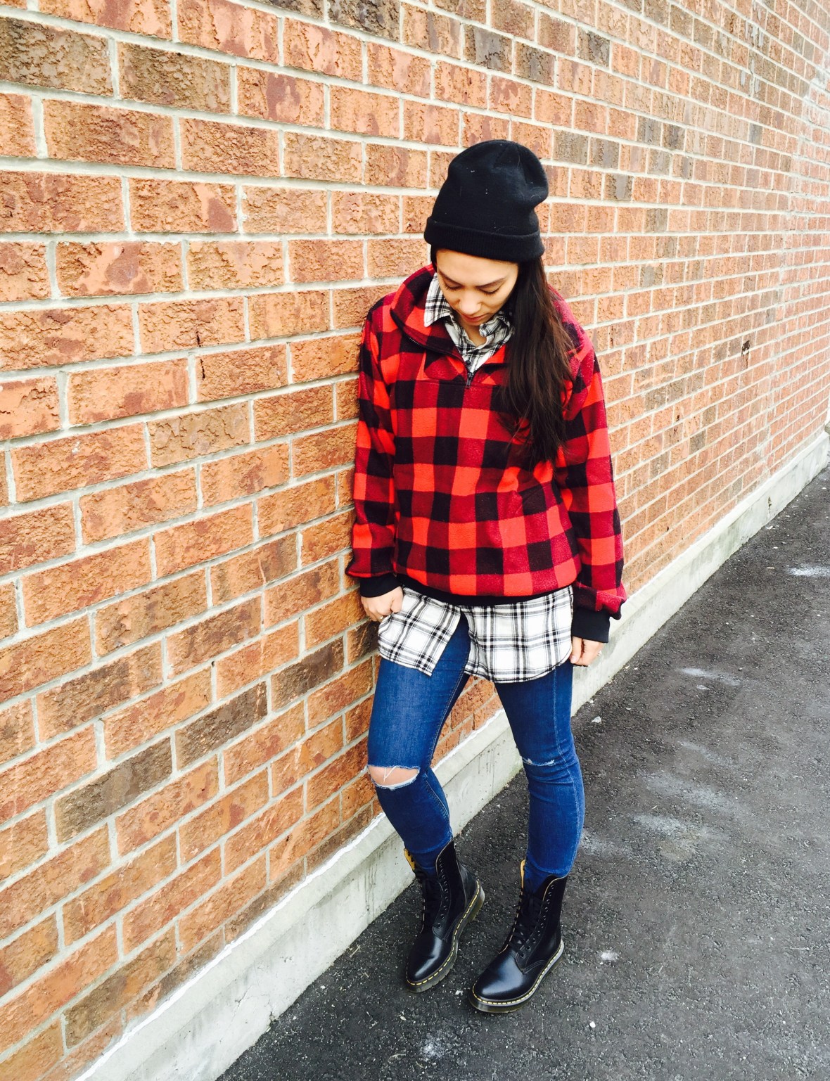 I got this comfy cozy red plaid fleece at Value Village a few years ago and it makes its way into rotation every year when the temperatures drop below zero. The white plaid is a Men’s shirt from the Stitches outlet. My jeans are from Top Shop Jamie HERE and my shoes are Dr Martens ALIX HERE